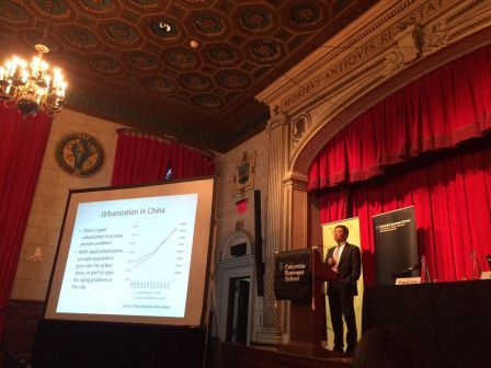 2015年10月14日,袁志刚教授在美国哥伦比亚商学院作为高级访问学者访问期间,受邀在 sixth annual university-wide N.T. Wang Distinguished Lecture Series 作主题为 “Social Welfare :Does It Have a Place in China's Evolving Economy”的报告,与会专家及学生众多,演讲内容引起很大反响。演讲会后哥大为袁志刚教授举行了隆重的招待交流会,会上就中国养老保障问题及中国宏观经济形势与众多嘉宾展开了热烈讨论和交流,让众多国外专家及在海外的复旦校友们对中国经济的热点问题有了更深层次的了解。以下为袁志刚教授在哥大发言的观点概要。