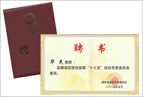 2014年5月,华民教授受聘为国家“十三五”规划专家委员会委员。国家“十三五”规划专家委员会是国家制定和实施“十三五”发展规划的咨询论证机构,其委员由国家发展与改革委员会遴选聘任。