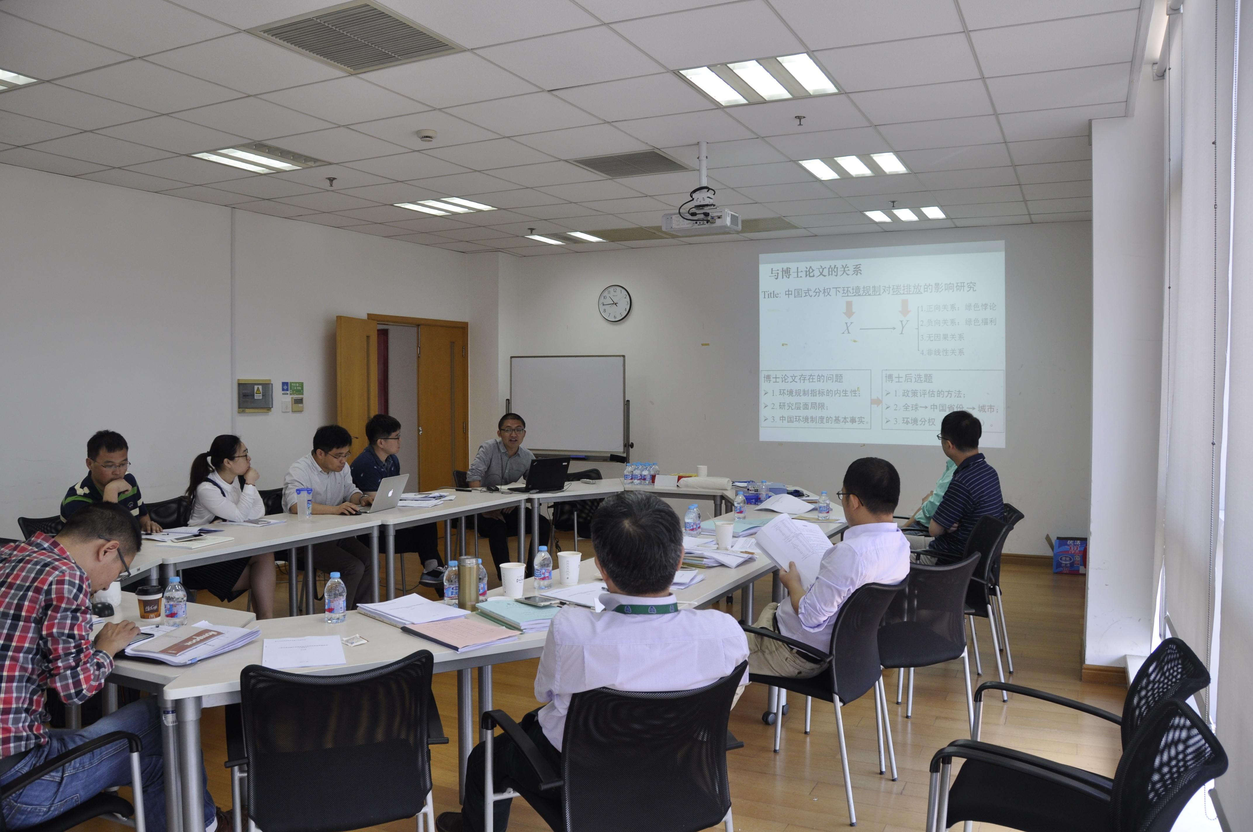 理论经济学流动站12位博士参加了本次汇报会。答辩委员会一致通过了张华、韩超、张云、杜宇伟四位博士关于《环境分权下环境规则的碳排放效应评估与减排政策研究》、《企业间资源重置视角下环境规制对工业污染排放的影响:作用机制、实证分析与政策优化》、《贸易隐含碳、碳泄露效应与碳排放责任界定》、《要素价格上涨与中国出口增加值变化——基于企业异质性视角的分析》的开题报告。答辩委员会通过邓业建关于《上海自贸试验区更高标准开放特别管理措施研究》的中期研究报告,并对其下一步研究提了建设性建议。在本次汇报中,杜建军、桑瑞聪、周芬、张传勇、汪莉等博士先后做了出站报告,完成了汇报工作。