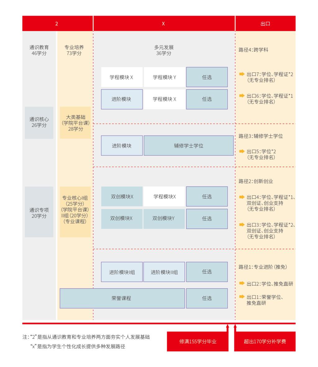 ▲bat365在线登录网站注册赠送36本科生“2+X”培养体系图