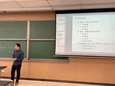 随即,陈老师向大家介绍了如何利用资源搜寻和下载文献,分别就英文文献和中文文献的搜寻方法向大家进行了展示。然后,陈老师为大家讲解了如何阅读文献。第一步对文献进行粗读,包括文字摘要、论文引言和论文结论,了解论文基本思想;第二步对文献精读,通读论文并且与别人进行讨论,读懂论文的技术细节;第三步Replicate经典论文的主要结果,掌握来龙去脉。