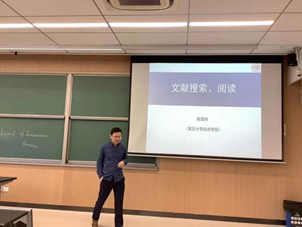 首先,汪立鑫教授介绍了本次写作指导课的重要性,这门课程会为同学们写本科毕业论文和今后读研时提供经验和指导;然后汪教授介绍了本次课程的主讲老师陈登科老师,陈老师是经济系最年轻的老师,并且刚刚获得了孙冶方经济学论文奖。