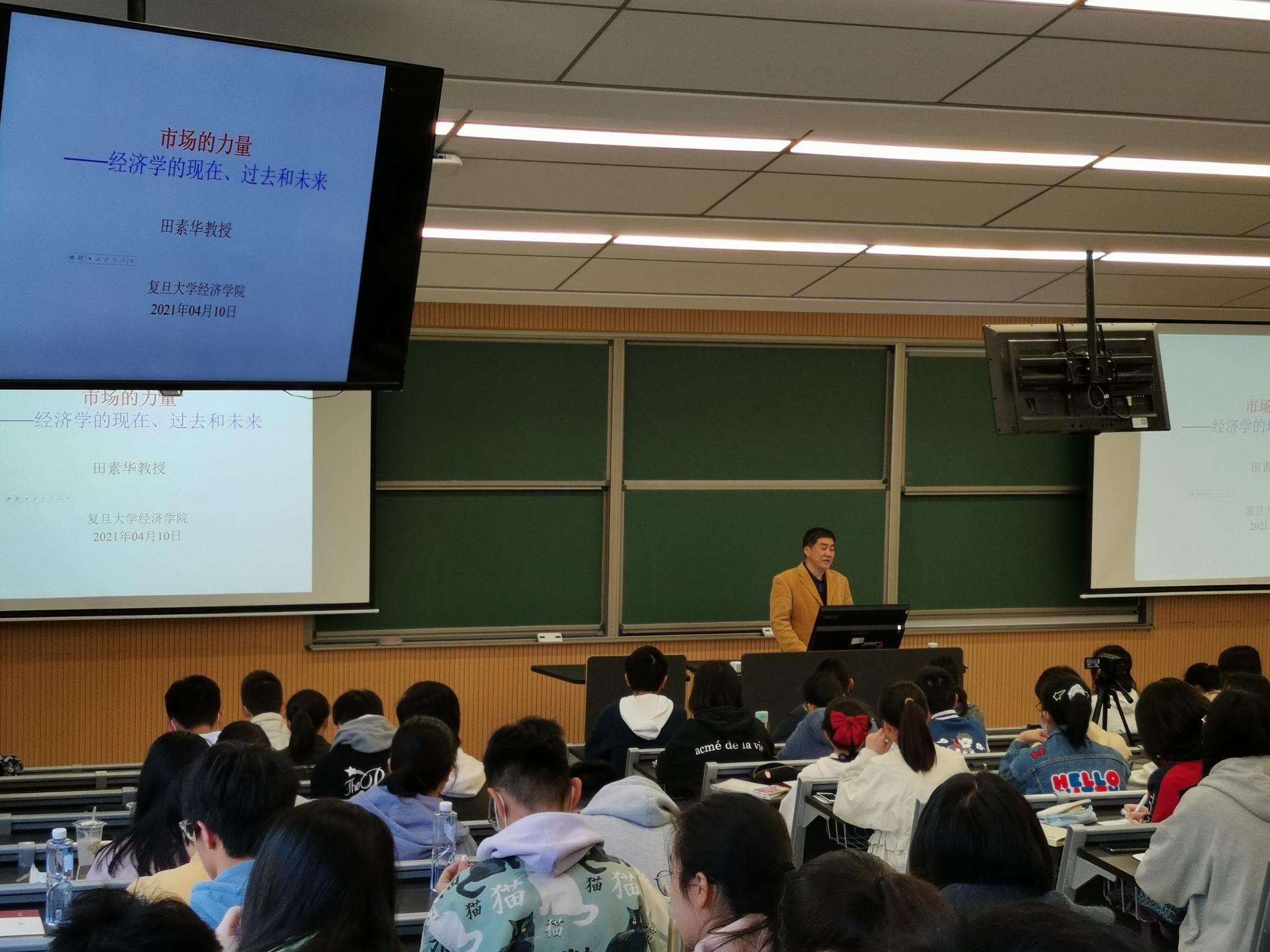 田素华老师讲解了经济学发展史上的三次革命和三次综合,并介绍了现代经济学的发展态势,系统介绍了经济学的演进规律和发展前景;结合中国经济赶超和世界经济格局的变化,与同学们探讨了经济学家的使命。