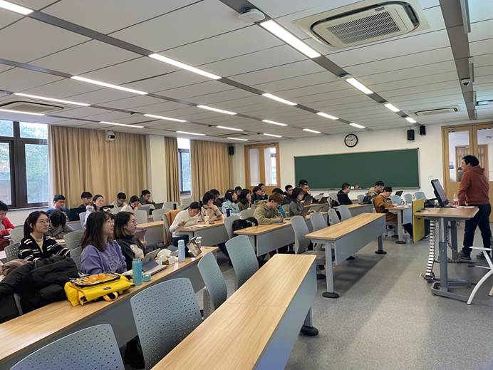 首先,刘老师介绍了自己的个人情况。他从自己的研究领域“税收政策与企业行为”出发,启发了同学们对自己感兴趣的研究方向的探索。刘老师指导同学们多从重要的现实问题出发,学会甄别自己领域内的关键议题。此外,他从结构模型的实证方法以及微观企业数据的角度分析了自己的研究特点,并总结了自己研究的创新点,如从理论上解释企业行为的微观机制,从政策上服务税收改革的决策咨询等。通过聆听刘老师对自身研究脉络的分析,同学们对学术研究有了更加可感可触的理解,并渐渐开始思考自己真正感兴趣的领域。
