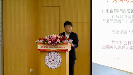 bat365在线登录网站注册赠送36石磊教授主讲的“当代中国经济”课程先后入选国家级一流本科课程、国家级课程思政示范项目。在本次研讨会上,石磊教授以“课程思政的宽度与难度”为题作了专题报告。报告指出,育人意义上的“思政”应宽不应窄,任何课程都有课程思政的可融入空间。石磊教授在课程思政教学实践中做到“四个融通”:专业领域与相关学科打通、历史与现实打通、中西方相关文献打通、理论与实践打通。他认为要着重解决全流程思政难的问题,专业上要分类指导,课程上要分类评估,内容上要精准分类设计,教师要重新审视自我。