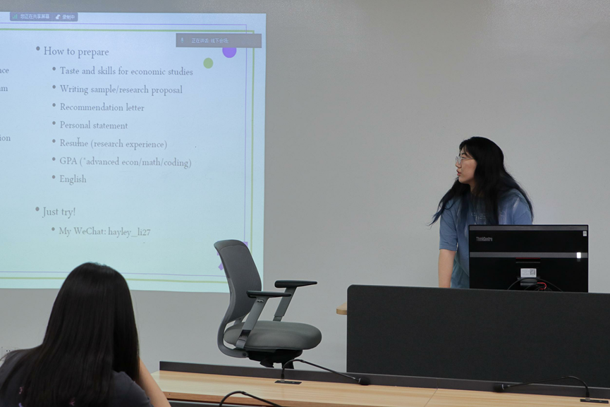 第二位分享嘉宾李嘉琪学姐以“海外经济学博士项目申请”为主题,主要介绍了博士项目的申请和香港提前批夏令营的情况。