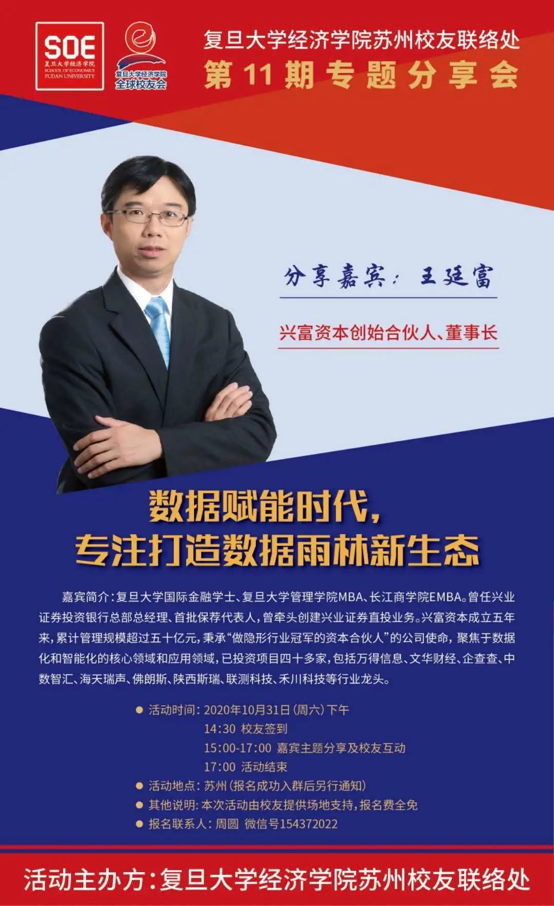 王廷富,兴富资本创始合伙人、董事长。复旦大学国际金融学士、复旦大学管理学院MBA、长江商学院EMBA。曾任兴业证券投资银行总部总经理、首批保荐代表人,曾牵头创建兴业证券直投业务。兴富资本成立五年来,累计管理规模超过五十亿元,秉承“做隐形行业冠军的资本合伙人”的公司使命, 聚焦于数据化和智能化的核心领域和应用领域,已投资项目四十多家,包括万得信息、文华财经、企查查、中数智汇、海天瑞声、佛朗斯、陕西斯瑞、联测科技、禾川科技等行业龙头。