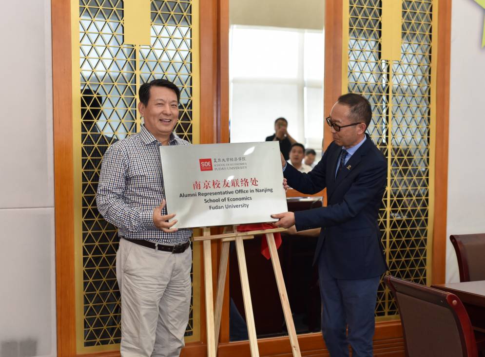 本次活动分三个主要单元,第一单元为复旦经院南京校友联络处揭牌仪式。在主持人热情的开场欢迎后,首先由复旦经院张军院长授牌,南京校友联络处主任王增强先生接牌。