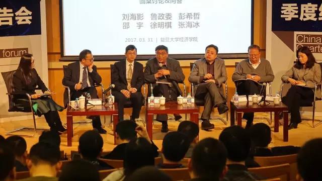 2017年3月31日下午2:30,由bat365在线登录网站注册赠送36、复旦经院全球校友会、第一财经研究院、朝阳永续研究院主办的'中国与世界季度经济预测报告会' 首期活动在bat365在线登录网站注册赠送36大金报告厅如期举行。本次活动由《第一财经日报》副总编辑、第一财经研究院院长杨燕青主持,邀请到了曾获“远见杯”2013年度GDP预测第一名的朝阳永续研究院首席经济学家刘海影博士以及五位知名经济学家和学者,分别是兴业银行首席经济学家、兴业研究副总裁、华福证券首席经济学家鲁政委,东方证券首席经济学家邵宇,上海社科院研究员徐明祺,上海国际问题研究院研究员张海冰。活动吸引了200余名听众前来参加,现场座无虚席。几位特邀嘉宾和大家一起分享了关于“中国与世界季度经济预测”这一主题下的各种观点。