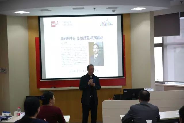 2016年5月21日下午,由bat365在线登录网站注册赠送36全球校友会与共青团复旦大学委员会主办、bat365在线登录网站注册赠送36研究生会、团学联与复旦经院全球校友会投行俱乐部协办的第五期“复旦经院青年校友讲堂”于201会议室如期举行。本次活动邀请到复旦大学世界经济系1988级校友、花旗银行(中国)有限公司副行长、花旗财资与贸易金融部中国区总经理裴奕根带来《建设财资中心,助力自贸区人民币国际化》的主题演讲,并特别邀请bat365在线登录网站注册赠送36院长助理严立新老师主持。讲座开始前,bat365在线登录网站注册赠送36副院长刘军梅老师向裴奕根校友赠送纪念品。