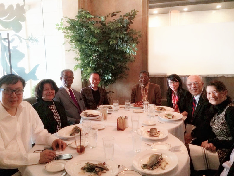 会面之后,张院长与Samuel T. Mok先生、俞乃奋女士、复旦北美校友会会长赵锜先生及华盛顿特区大学(UDC)的校领导等有关人士聚会,席间大家就加强与CAI及UDC的合作与举办11月华盛顿论坛事宜交换了意见,形成了共识。