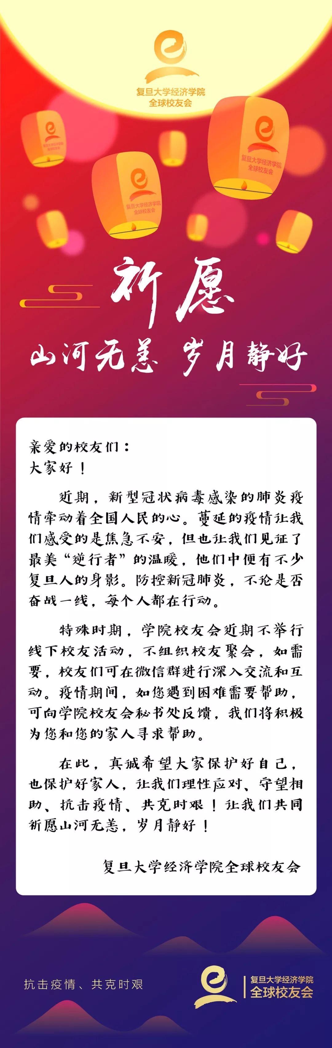 汪新芽校友伉俪多次向“复旦大学抗击新型冠状病毒肺炎医疗基金”捐赠支持防疫抗灾。此外还有许许多多的校友也都在各行业战线上奔走,为战胜这一场战“疫”贡献自己的力量!