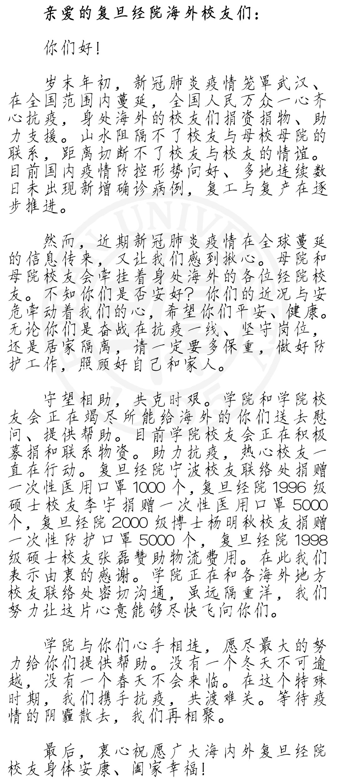 愿所有复旦经院校友健康!
