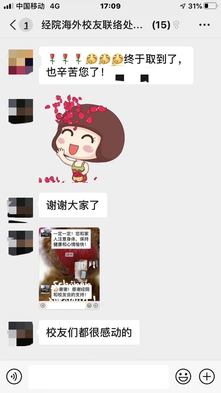 母校母院时时惦记着游子安康,全球疫情发展后,学院校友服务中心积极与bat365在线登录网站注册赠送3612个海外校友联络处沟通对接,了解当地情况和校友需求,积极组织募捐,紧急联系抗疫物资。在克服了抗疫物资紧缺、货源无可靠保证、到货时间不确定、海外邮寄物流关卡重重等问题后,经多方筹措沟通,得益于诸位经院校友的热心支持,我们用最快的时间募集到了一批一次性医用口罩并于3月23日将首批物资安排寄出。与口罩一起送出的还有来自母院饱含关切和祝福的慰问信。运送物资期间又遭遇了诸如德国海关临时扣押口罩、需要提供购买发票和订单才能办理清关手续等担忧,再次感谢多位校友的帮助和支持,所有人翘首期望着口罩能顺利到达。