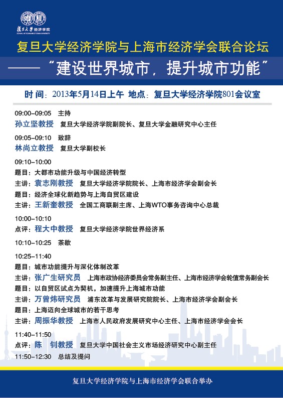 10:50-11:15 题目:以自贸区试点为契机,加速提升上海城市功能