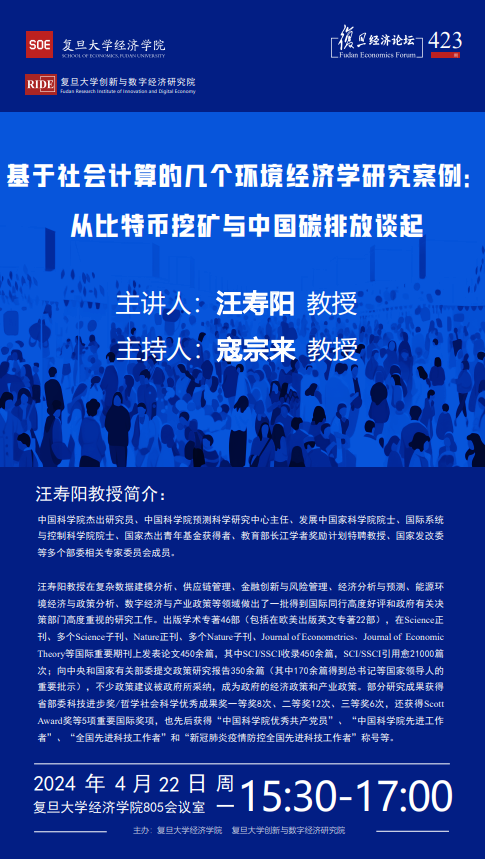 【报告题目】基于社会计算的几个环境经济学研究案例:从比特币挖矿与中国碳排放谈起