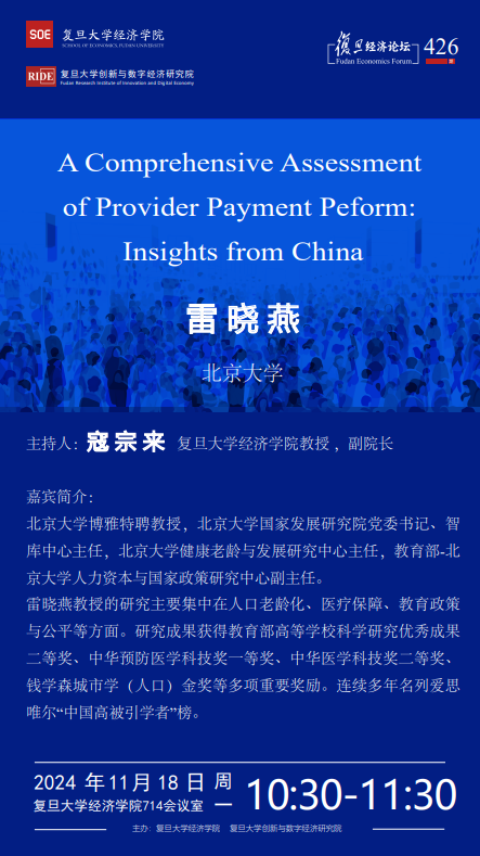 复旦经济论坛426期:A Comprehensive Assessment of Provider Payment Peform: Insights from China