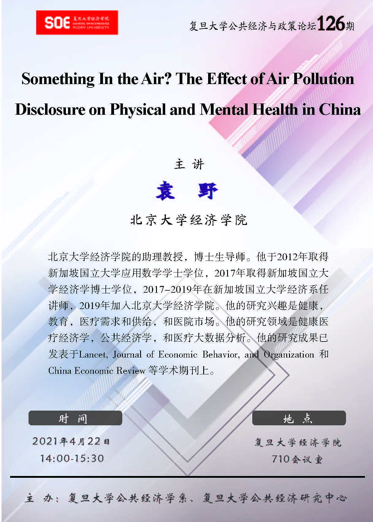 上一篇:复旦大学公共经济与政策论坛127期:Growing up without Health Insurance: Evidence from Rural China