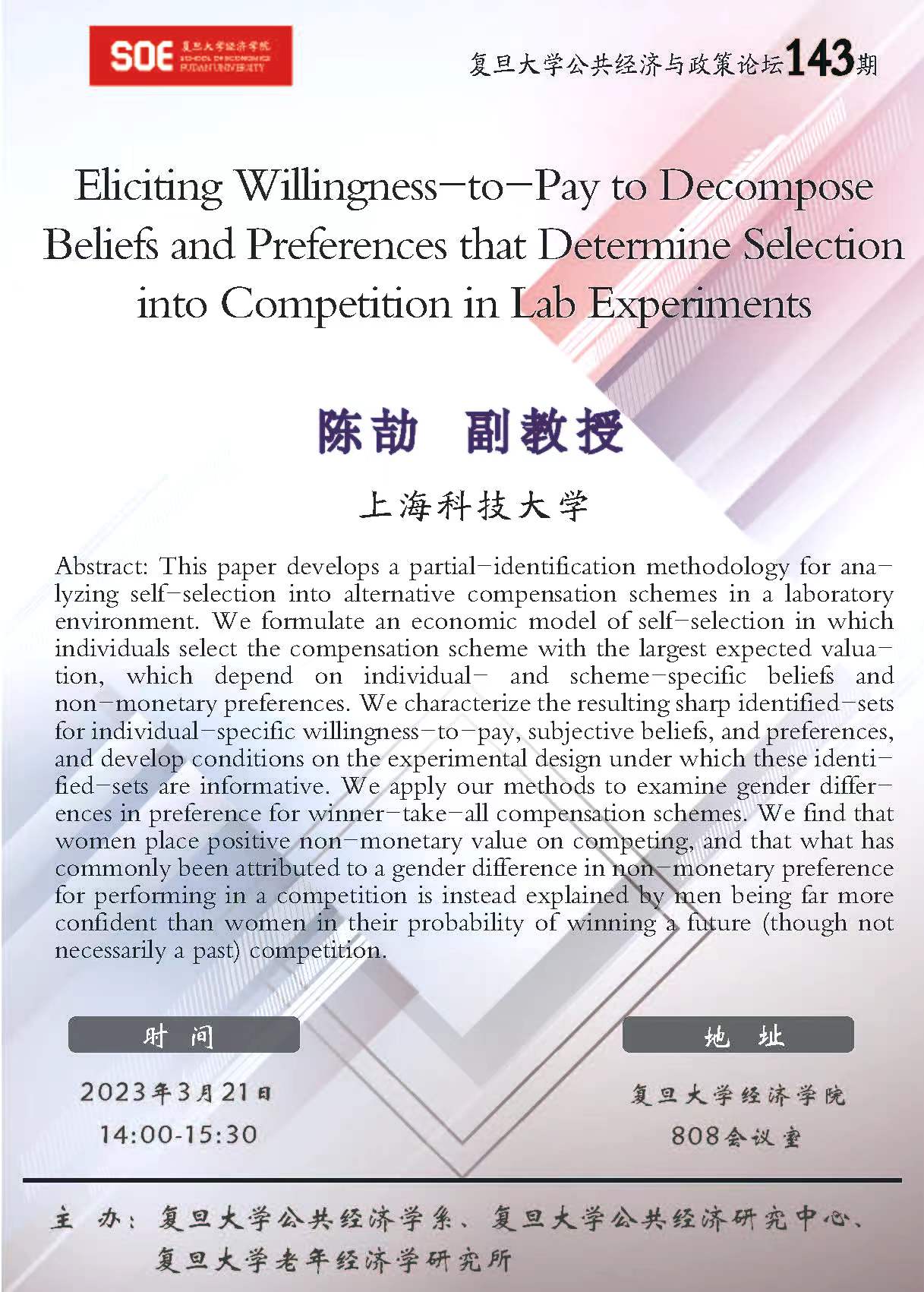 下一篇:复旦大学公共经济与政策论坛142期:Family Size and Child Migration: Do Daughters Face Greater Trade-offs than Sons?
