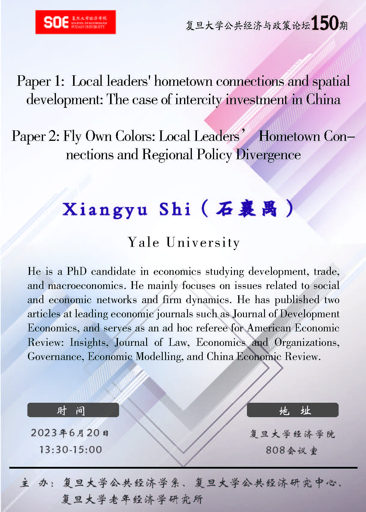 上一篇:复旦大学公共经济与政策论坛151期:Germs in the Family: The Short- and Long-Term Consequences of Intra-Household Disease Spread
