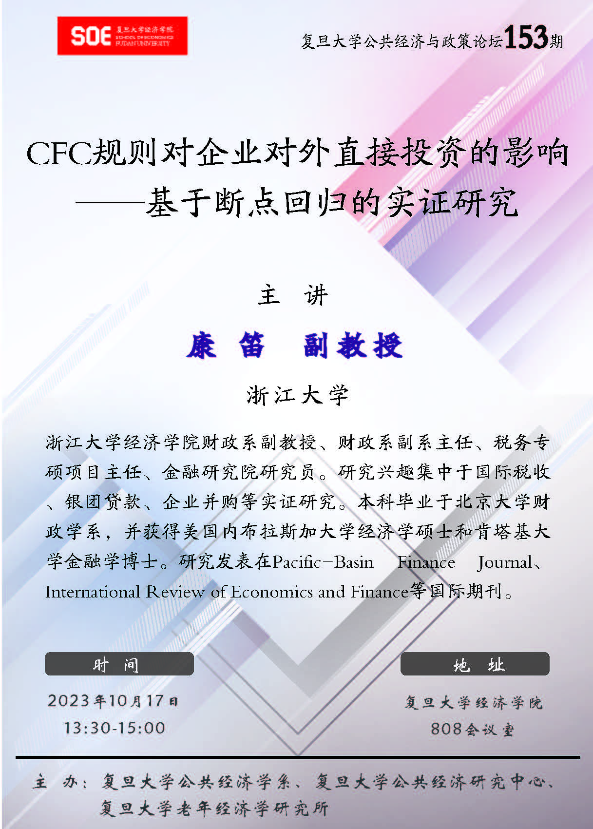 上一篇:复旦大学公共经济与政策论坛181期:地方政府行为、制度性贸易成本和国内经济循环