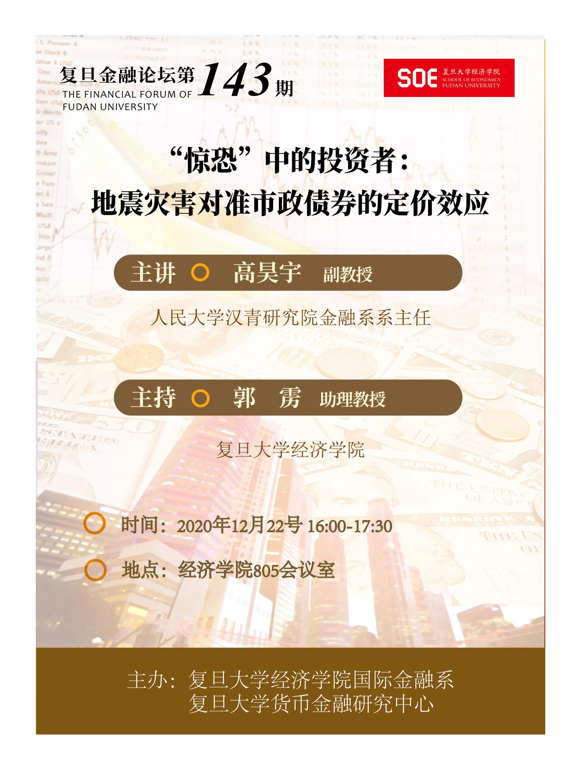 复旦金融论坛第143期:“惊恐”中的投资者:地震灾害对准市政债券的定价效应
