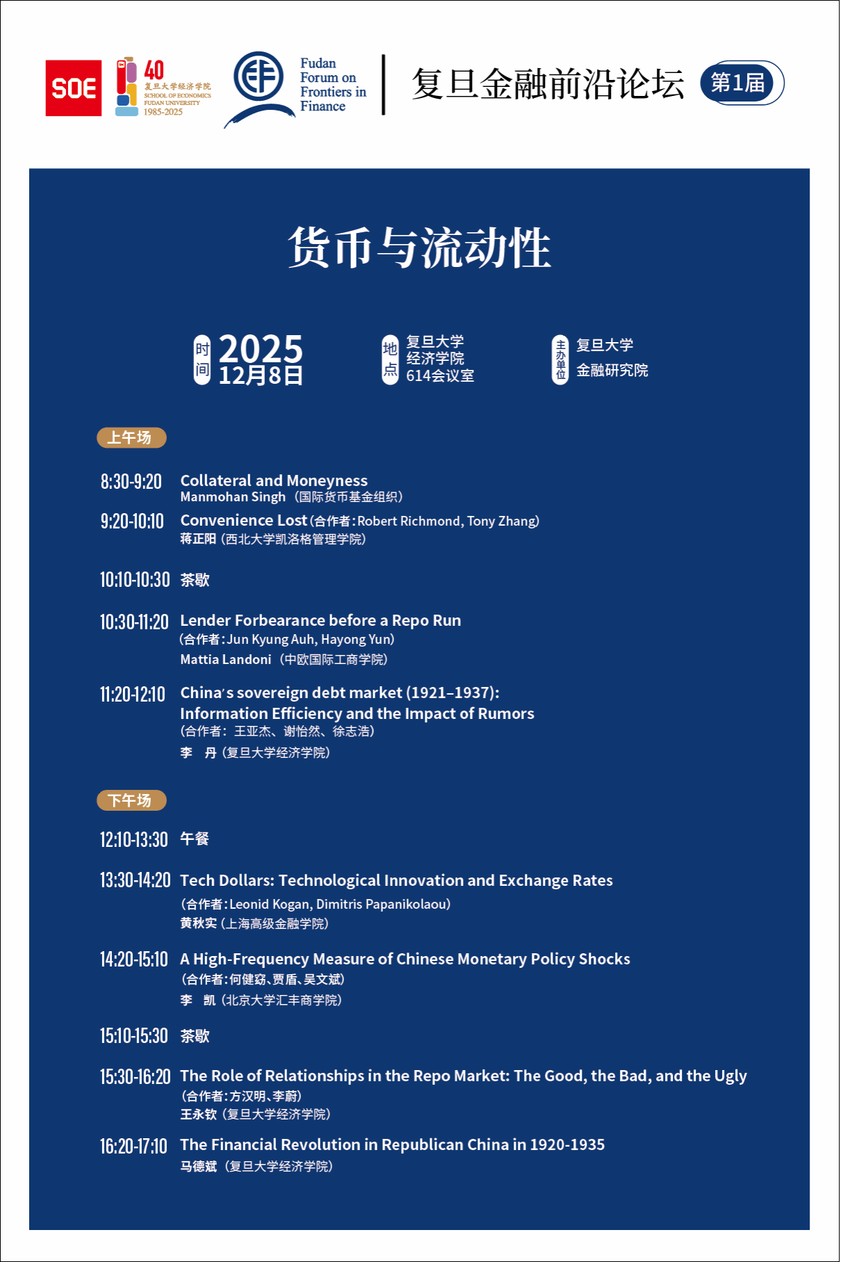 复旦金融前沿论坛 第1届:货币与流动性