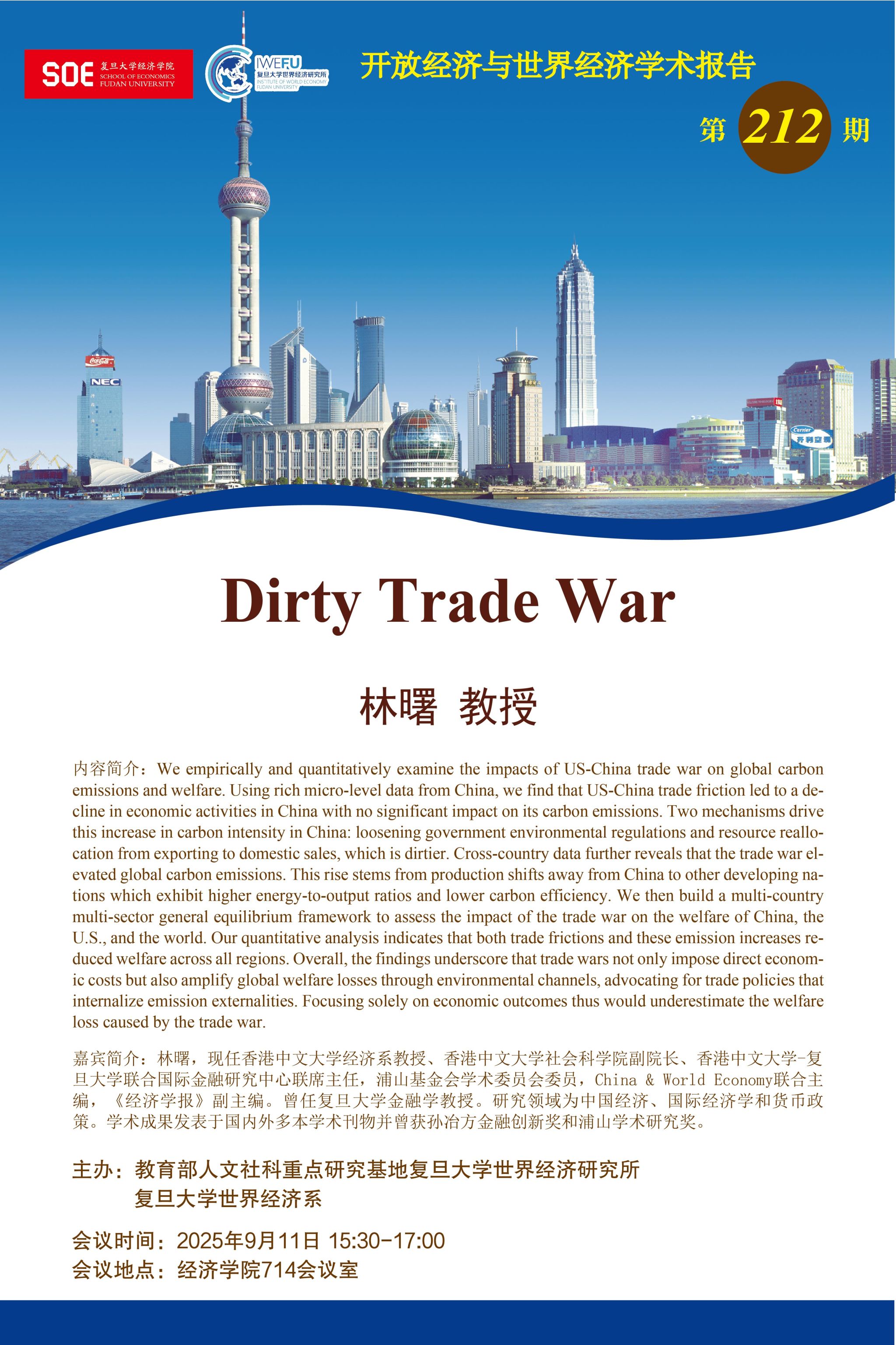 上一篇: 复旦大学世界经济研究所开放经济与世界经济学术报告第214期:A Political Economy of Mercantilism