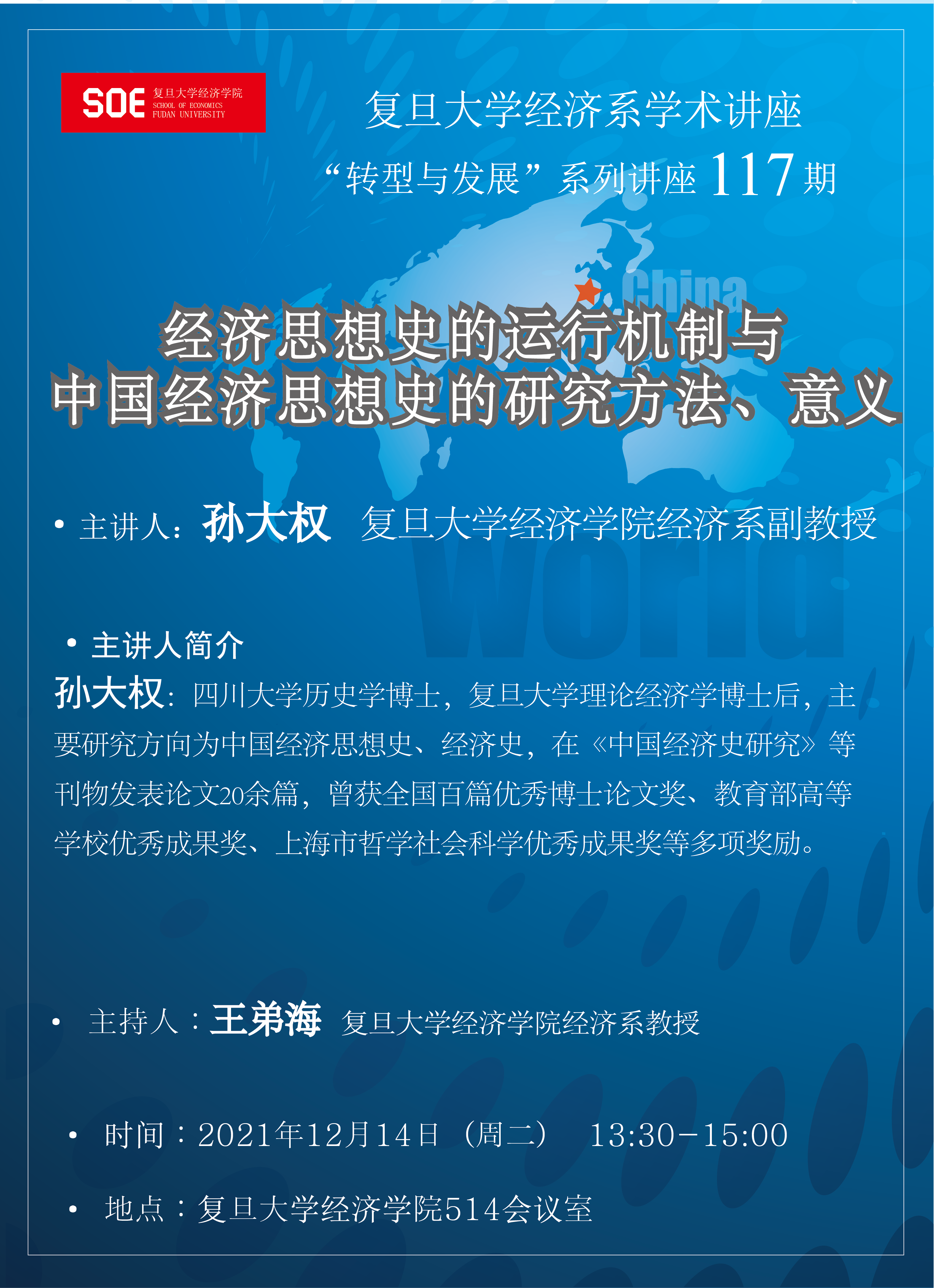 转型与发展经济系列讲座第117期:经济思想史的运行机制与中国经济思想史的研究方法、意义