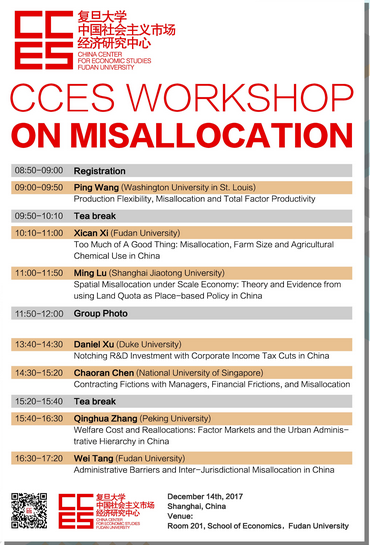 此次会议的后一天(2017年12月15日)将在上海交通大学安泰经济与管理学院召开第4期“空间政治经济学”研讨会--聚焦“空间错配”(Spatial Misallocation),诚邀大家参会。