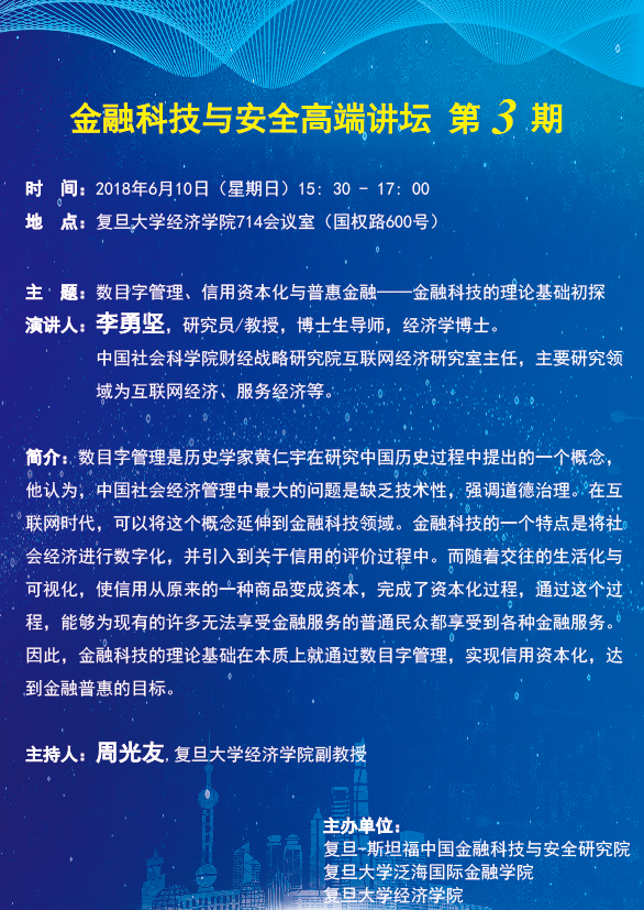 下一篇:金融科技与安全高端讲坛第2期:Dependence of Structural Breaks in Rating Transition Dynamics on Economic and Market Variations