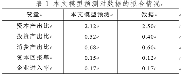 表1报告了理论模型预测结果对已有数据的拟合情况。一般而言,模型预测数值与实际数据越接近,说明模型对现实经济的刻画越准确。表1 显示,本文模型能够较准确地拟合实际经济数据,进而能够较好地刻画中国经济特征,从而增加了在这一模型框架内考察中国经济转型过程中国有与非国有部门之间资源误配对中国经济增长绩效影响的可信度。
