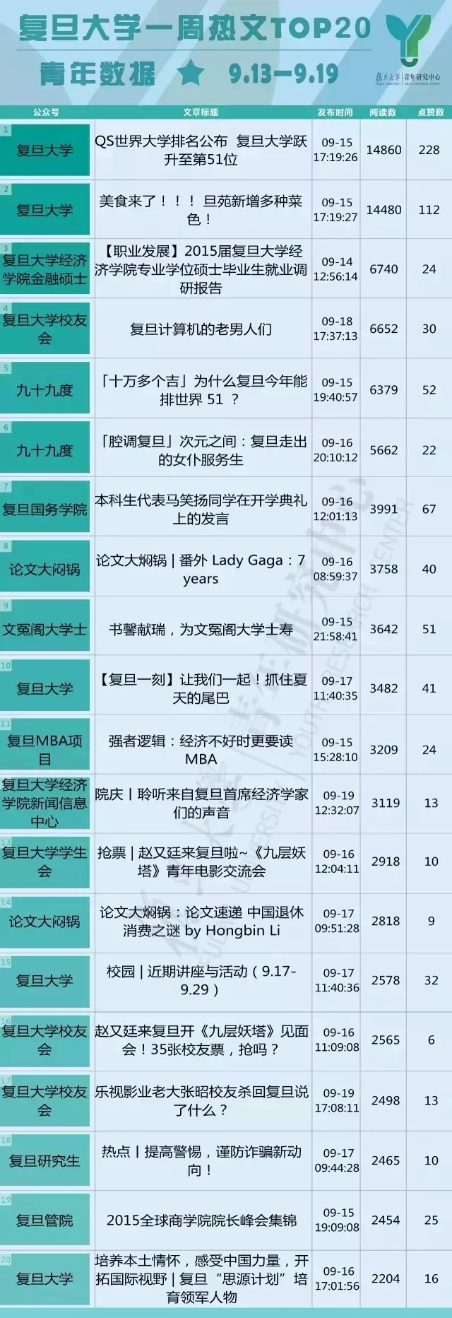 说明:所有图片及关于榜单的说明来自公众号“复旦大学青年研究中心”