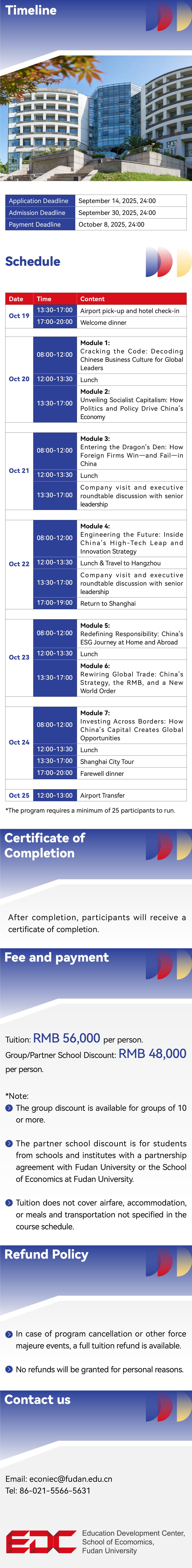 下一篇:2024 Summer Camp for High School Students on Chinese Economy and Finance (Non-degree Education Program)