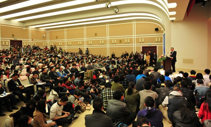 当晚,复旦大学吴文政报告厅座无虚席,林毅夫教授向复旦广大师生做了题为“新结构经济学:发展经济学的第三波思潮”的报告。复旦大学中国社会主义市场经济研究中心主任张军教授主持了讲座,第一财经提供了媒体支持。复旦大学的许多教师、同学以及媒体代表参加了讲座。