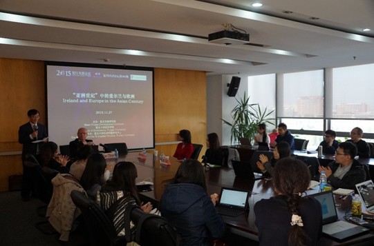 在演讲中,Dan O’Brien首先回顾了全球经济及全球化过程,认为全球经济正处于恢复其长期历史趋势的过程中,亚洲会恢复全球经济的主导地位;他进而聚焦爱尔兰,分析爱尔兰经济的长项与劣势,指出爱尔兰在社会稳定、政治稳定、司法完善等六个方面有着优势,但面临着债务问题、企业不足、高税率等问题;在此基础上,进一步将爱尔兰经济与中国经济进行比较;最后谈论了整个欧洲发展的几个方面问题——欧元、欧元区的通货紧缩和量化宽松以及英国与欧盟的关系。