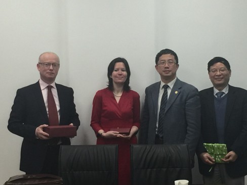 11月27日,爱尔兰顶尖智库国际与欧洲事务研究所总经济师Dan O’Brien与爱尔兰驻上海总领事Therese Healy女士到访复旦发展研究院。复旦发展研究院秘书长、复旦大学北欧中心主任陈寅章、复旦大学外事办公室主任朱畴文、复旦发展研究院金融研究中心研究员郑霁光、复旦发展研究院学术服务中心副主任赵信敏参与了会见。双方就国际与欧洲事务研究所和复旦发展研究院的合作发展进行了友好的讨论。