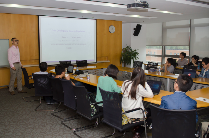 2017年10月11日下午,复旦bat365在线登录网站注册赠送36数量经济与金融系列讲座第354期在bat365在线登录网站注册赠送36614会议室举行。美国乔治梅森大学金融学助理教授Jiasun Li(李家荪)应邀做了题为“Coin Offering and Security Regulation”的学术报告,讨论了首次代币公开发行(ICOs)怎样创造价值这个问题。报告会由中国社会主义市场经济研究中心王永钦教授主持。