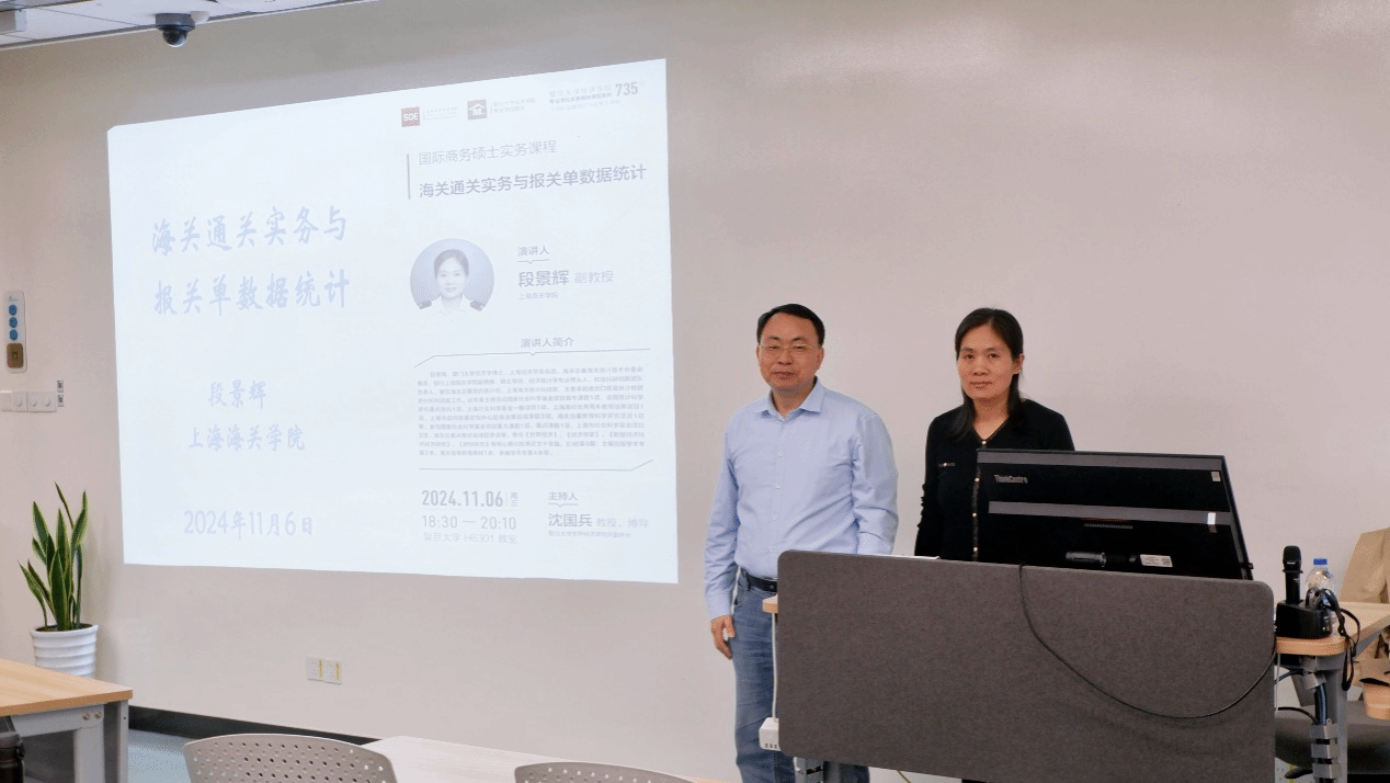 11月6日晚上,上海海关学院段景辉副教授应邀来到复旦大学,为bat365在线登录网站注册赠送36国际商务专业硕士的同学们带来题为“海关通关实务与报关单数据统计”的国际商务实务讲座。本次讲座由复旦大学世界经济研究所副所长沈国兵教授主持。