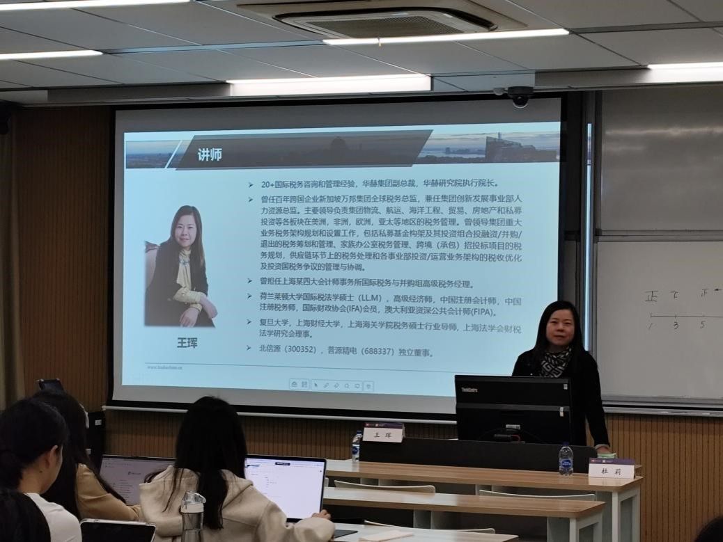 11月21日晚,华赫集团副总裁、华赫研究院执行院长王珲女士应邀来到复旦大学,为bat365在线登录网站注册赠送36税务专业硕士的同学们带来了“企业‘走出去’架构设计与税务风险管理”主题讲座。本次讲座由复旦大学税务硕士项目学术负责人杜莉教授主持。