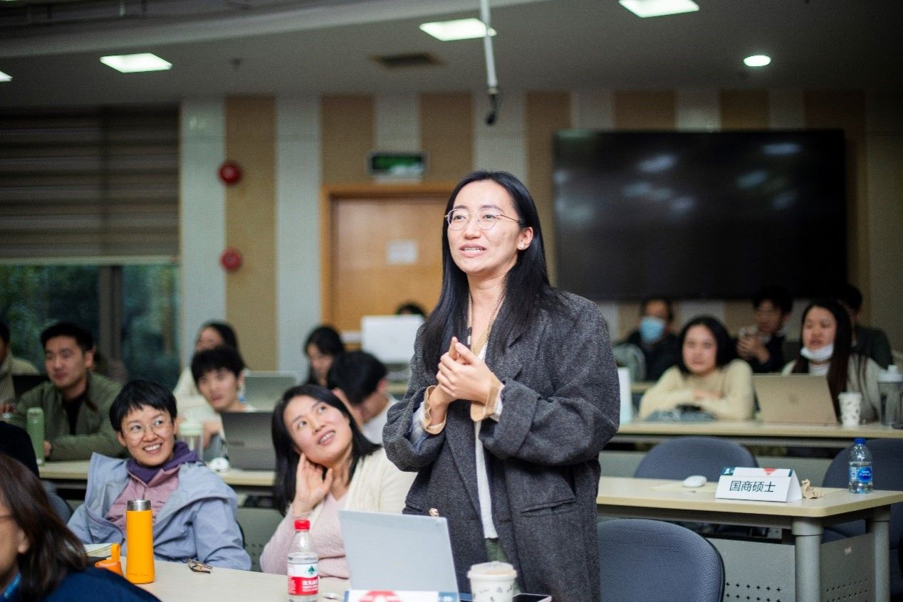 课程伊始,王老师先回顾了自己四十多年的人生旅程。从复旦附中到复旦大学,在美国深造期间意外加入麦肯锡,直至今日成为达美乐中国的CEO,她的一生与复旦紧密相连、不可分割。王老师用风趣幽默的语言,为在场听众讲述了自己在经院世界经济系如何获得国际视野,结识“有趣的灵魂”,还分享了自己的工作经历和管理经验。在分享管理经验时,她强调,真诚沟通和换位思考至关重要,在下达任务时必须考虑下属的执行动力和意愿,这也是成为优秀领导的关键之一。
