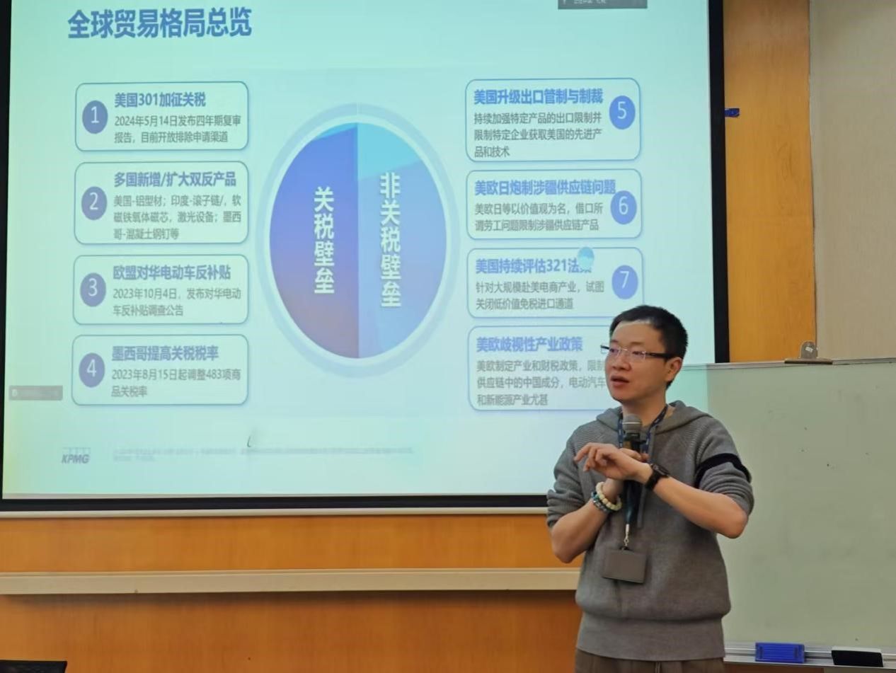 本次论坛由bat365在线登录网站注册赠送36与毕马威中国联合策划,采取线上线下相结合的方式开展,主题为“换个角度看中美贸易和供应链的变革与机遇——关税与非关税壁垒的纵横交错”。毕马威中国供应链与国际贸易主管合伙人张浩炜先生就中美贸易战的前沿进展进行了解读分享,复旦大学中国社会主义市场经济研究中心刘志阔教授应邀进行了线下评论发言。复旦大学税务硕士项目学术负责人杜莉教授主持了本次论坛的分享与交流。除复旦税务专硕的师生之外,本次论坛还吸引了兄弟高校的师生及税务从业人员六十多人线上参与。