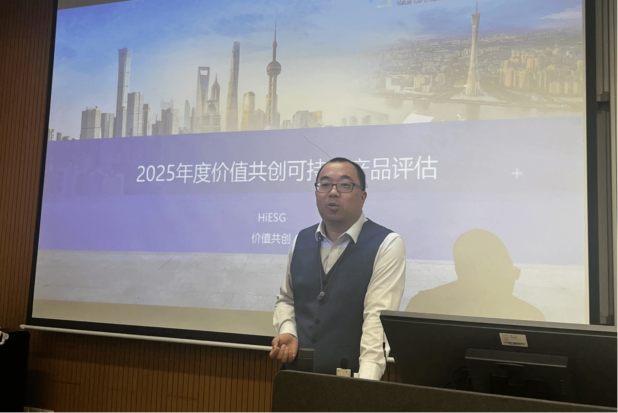随后,刘老师简要介绍了价值共创可持续产品评估系统。通过中国铁塔公司设立、美团青山计划等生动案例,他阐释了“企业行为同时惠及自身、社会与环境”的价值共创理念,并指出,实现可持续消费必然以可持续产品的供给为基础。