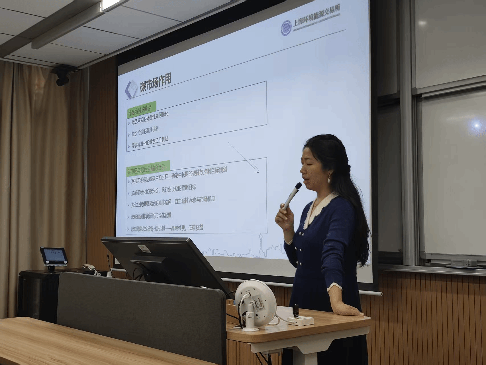 最后,在碳金融部分,李老师展示了绿色金融如何为低碳转型注入活力。她重点介绍了以上海环交所为核心,联合上海证券交易所、上海期货交易所等机构共同构建的绿色指数体系,包括“中证上海市环交所碳中和指数”、“上海碳价格指数”等,展现了金融市场对实体经济绿色转型的强大支撑力。