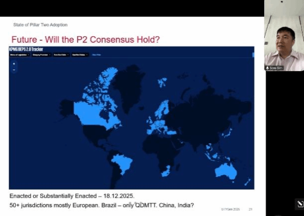 接着,在探讨AI对国际税收规则的冲击时,沈老师指出,当前OECD主导的“双支柱”改革方案并未充分纳入对AI特性的考量。支柱一旨在向市场国分配征税权,但其复杂的设计与高度政治化的谈判进程导致落地困难;支柱二推行全球最低税率,却因美国政策反复而面临执行障碍。他强调,现有国际税收框架仍建立在“物理存在”和“传统无形资产”基础上,难以适应AI时代高度数字化、去中心化的价值创造模式。