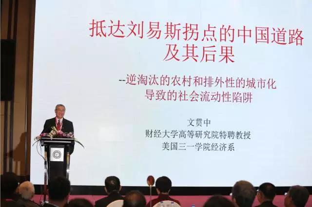 因为刚刚袁志刚校友提到,我们不仅要追求效率,也要追求社会公平。如果只是一部分精英获得了全球化的好处,那么不但在美国,在英国,在欧洲引起反弹,迟早在中国也会引起反弹。所以我觉得这跟中国的立国之本也是矛盾的。在这一点上,中国的收入分配,现在跟理想还是有很大的差别。特别是城乡之间的差距,到目前为止还在扩大当中。逆淘汰的农村,是指农村里面最好的一部分劳动力撇出来,但是市场又把他淘汰掉了,农民工在上海基本上不可能落户,所以在排外性的城镇化之下,这说明什么?中国主要通过城镇化,使得农村极大部分人口,转化成城市人口,然后城市又有大量的人力资本和物质资本。所以虽然是劳动,但是他跟资本结合以后,他的生产力肯定有一个飞速的提高。因此他的流通率也会提高。这是使得农村人口整体进入中产阶级的一个必由之路。