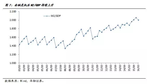 三是货币刺激经济增长的边际效用显著递减。2009年以来,为应对金融危机冲击及促进经济较快增长,人民币新增贷款适应性地较快增多,2015年底贷款余额比2008年底增长209.7%,远远超过GDP实际增长速度(76.0%)。相应地,M2/GDP也快速升高。信贷刺激对经济增长的边际作用越来越小,但对资产价格(特别是房价)的影响却越来越大。
