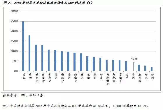 政府负债率有一定空间。截至2015年末,我国纳入预算管理的中央政府债务10.66万亿元,地方政府债务16万亿元,两项合计,全国政府债务26.66万亿元,占GDP的比重为39.4%。加上地方政府或有债务,2015年全国政府债务的负债率将上升到41.5%左右。上述债务水平低于欧盟60%的预警线,也低于当前主要市场经济国家和新兴市场国家水平(如日本接近250%、美国超过100%、法国100%左右、欧元区超过90%、德国70%左右)。总体来看,我国政府仍有一定举债空间,可以阶段性实施积极的财政政策,为结构性改革赢得必要的时间。