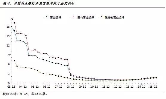 首先,目前商业银行不良贷款率仍处于相对低位,远低于1998年金融危机时期。2016年一季度末,中国商业银行不良贷款率1.75%,而1998年亚洲金融危机爆发后,中国商业银行普遍处于“技术性”破产状态,直到2004年一季度,国有商业银行不良贷款比例仍高达19.2%,股份制商业银行高达7.1%。近2年商业银行不良贷款虽增加较快,但不良率的绝对水平仍处于低位:2013年处于历史谷底水平,低于1%;2014年和2015年有所上升,分别为1.25%和1.67%。