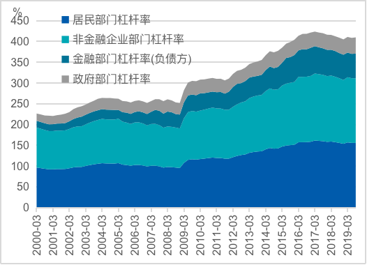 图5 中国各部门债务与GDP的比率